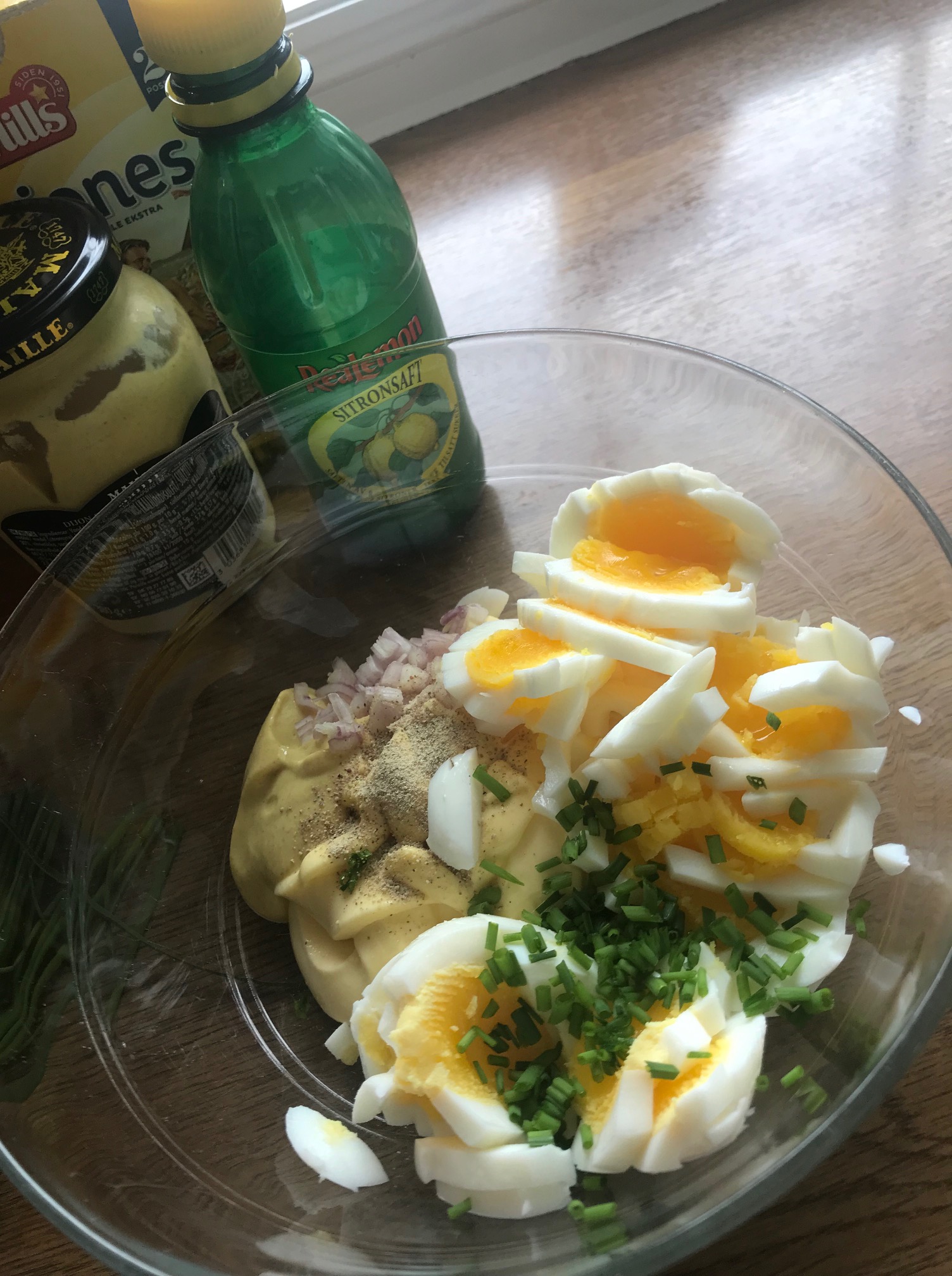 4 kokte egg pluss gressløk.