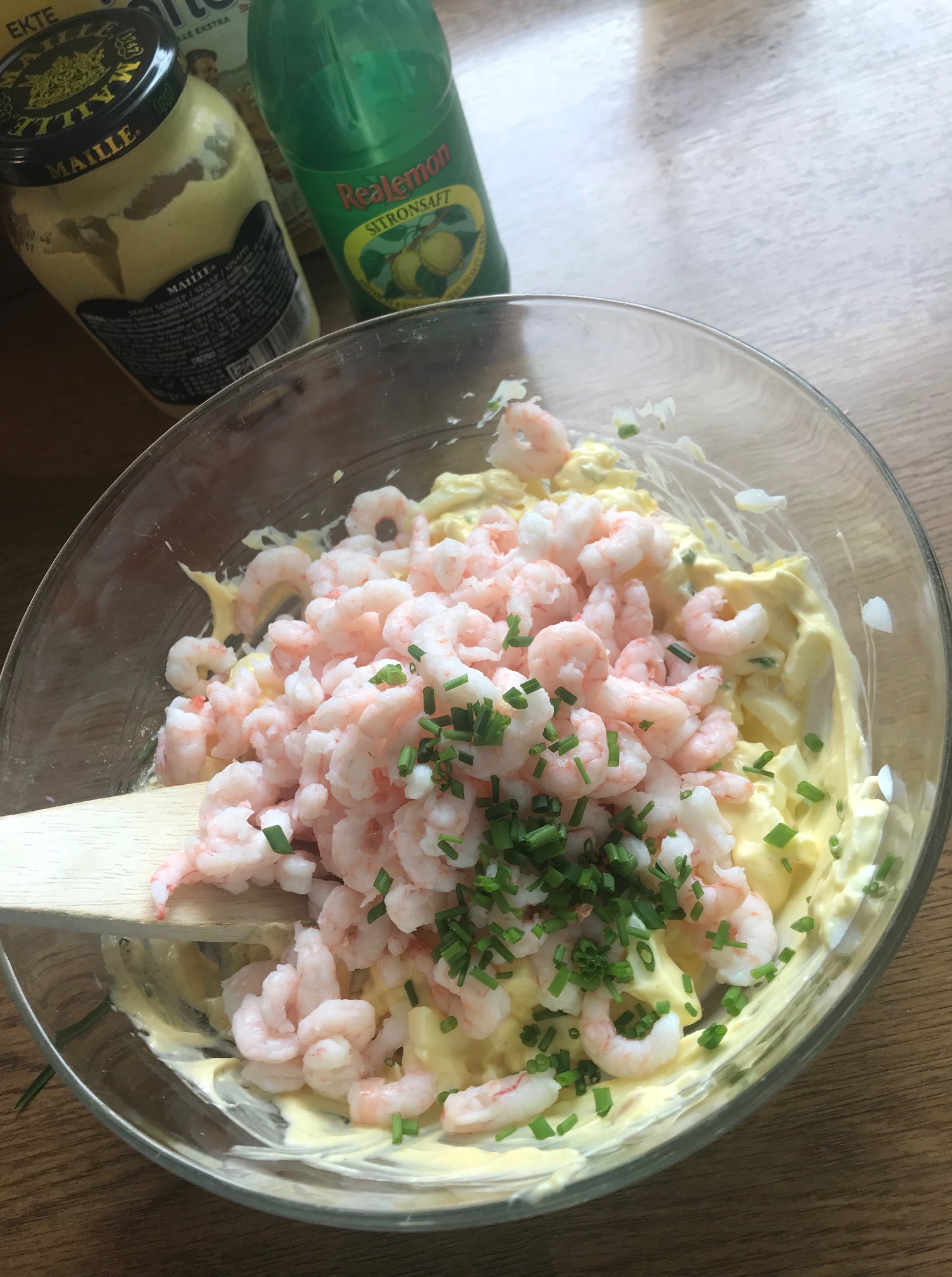 Selvfølgelig er det best med ferske reker, men reker i lake fungerer også, bare husk å skyll laken av og tørk godt.