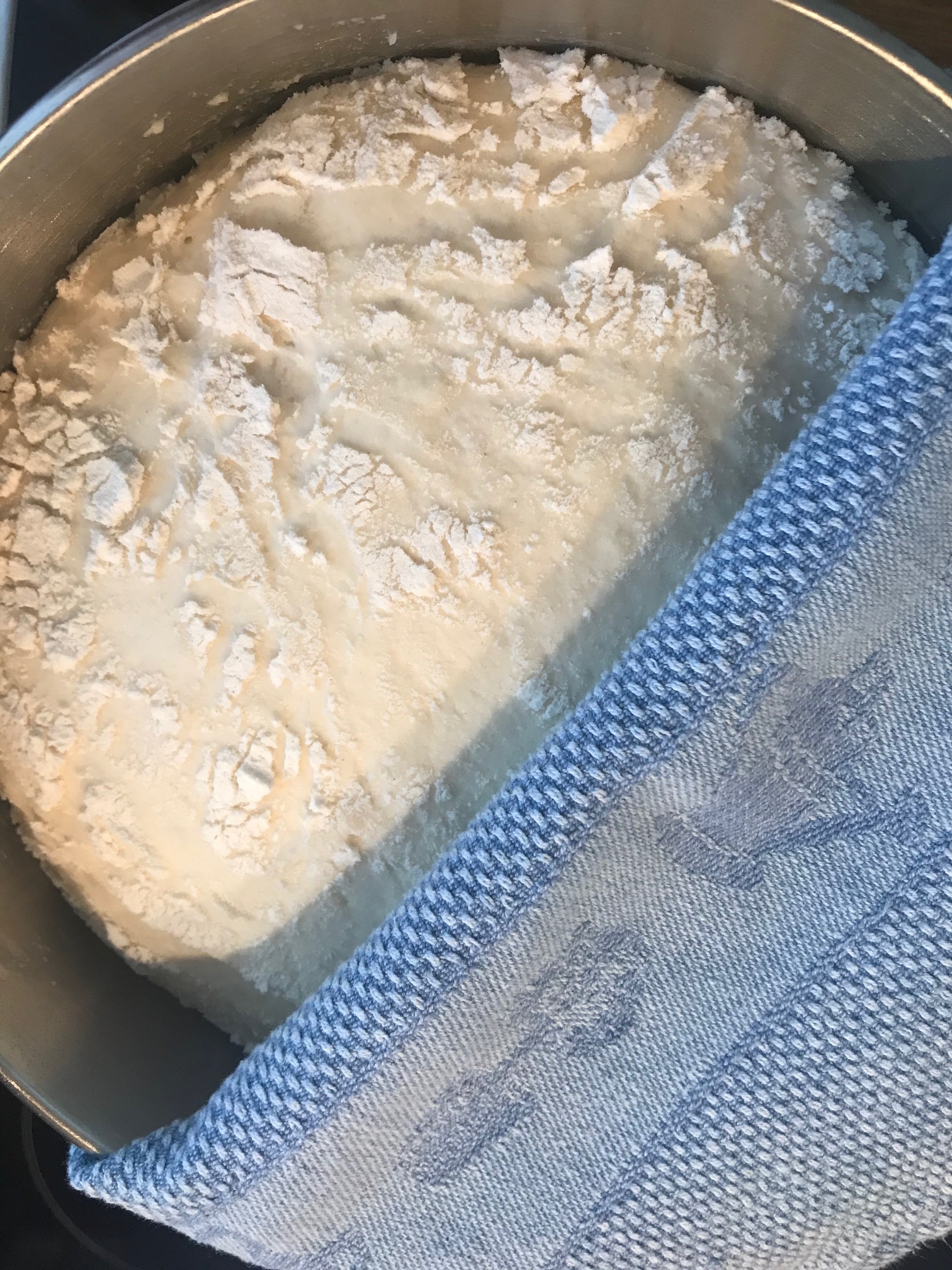Tøm alt det tørre i kjøkkenmaskin, og smuldre inn gjære, bland dette godt, tilsett så potet/melkeblandingen, og elt i 12 minutt, heves i 1 time.. Tilsett salt tilslutt.