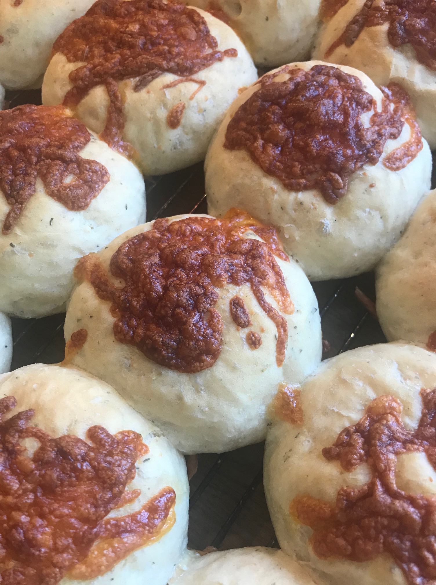 Ta ut deigen, og form til to brød, enten i form eller på bakebrett, etterhev i 40 minutt. Pensle med vann og dryss parmesan på toppen, Stekes på 200 grader i ca 40 minutt.