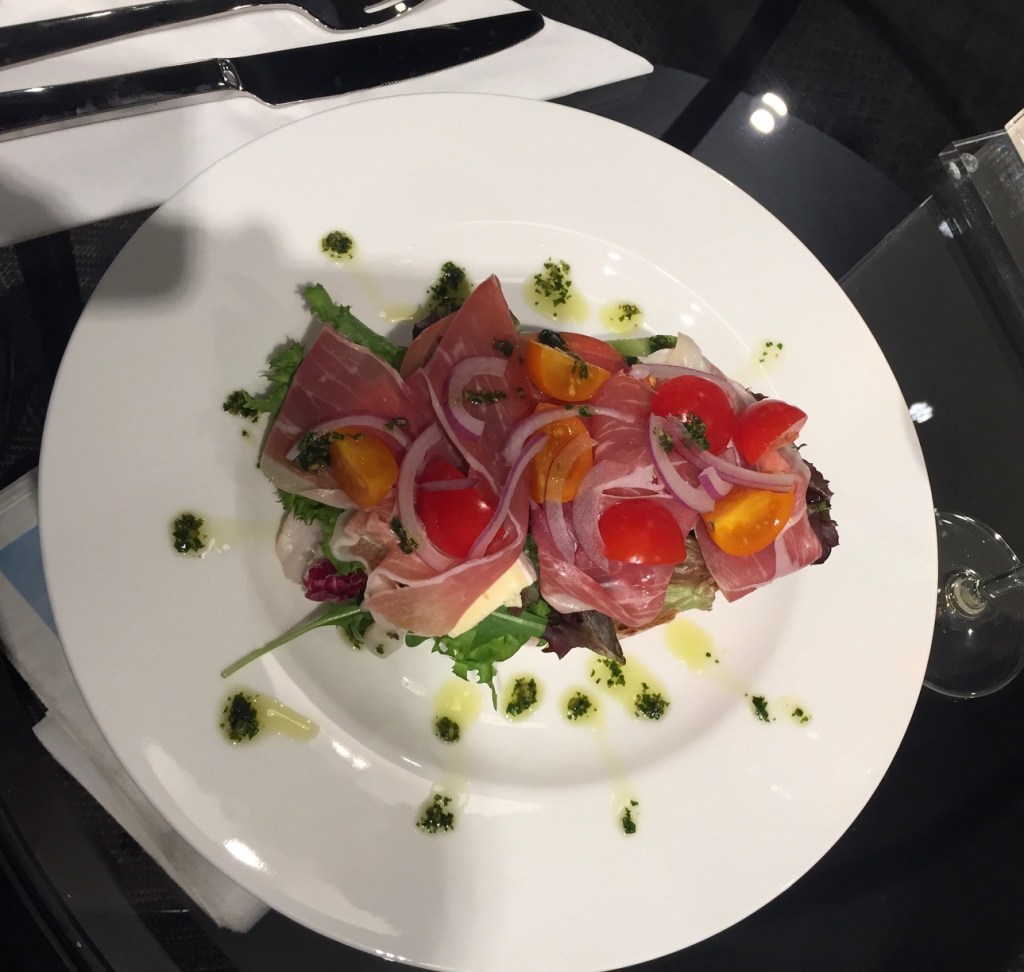 Til dette smørbrød har jeg brukt, frisk salat, 3 skiver modnet brie ost, parmaskinke, cherrytomater, pluss litt rå løk, den lar jeg ligge i kaldt vann i 5 minutt, det demper løken litt. Med litt basilikumpesto på toppen kan jeg garantere dette smaker.
