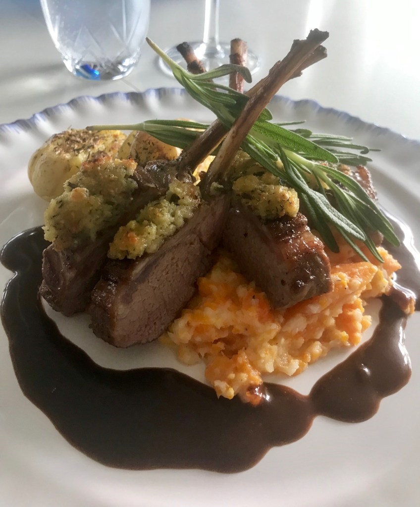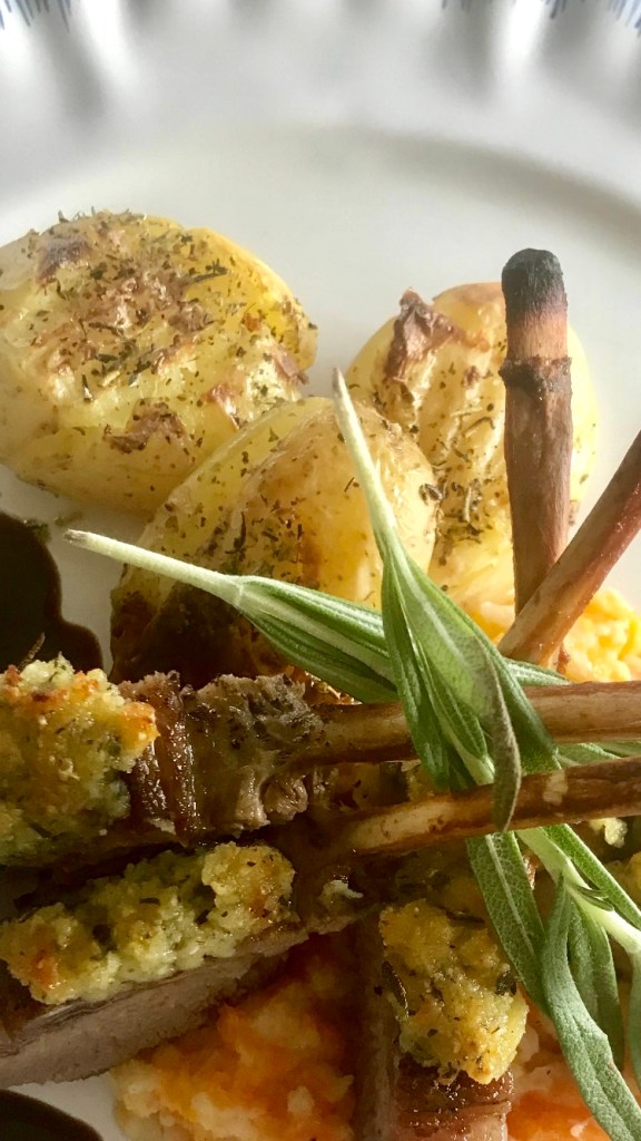 Tid for årets lam, og det finnes mange gode oppskrifter på lammecarre, her er min, punktstekt, et par minutter under grillen med en god topping.. servert med rotmos og kokt/stekte poteter, pluss en fyldig lammesjy/saus…