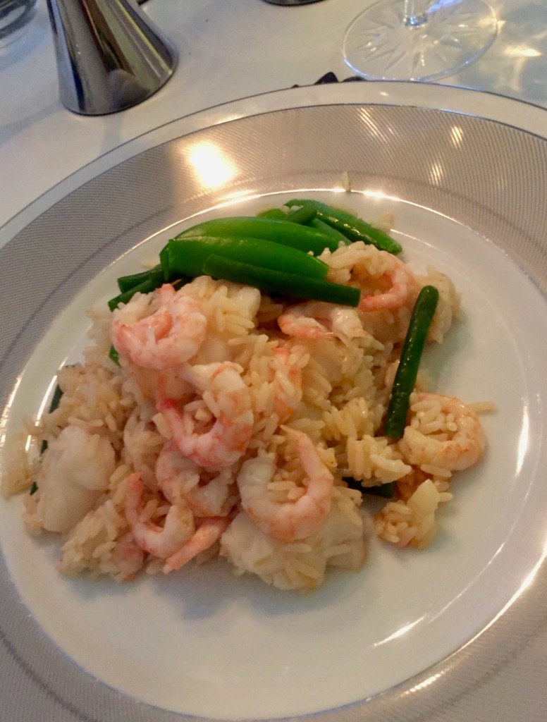 Ris: Skyll risen, varm en kjele med litt olivenolje, fres risen sammen med finhakket hvitløk pluss finhakket sjalottløk.. rør om på sterk varme, tilsett rekekraft og kok risen ferdig ca 8-10 minutt, smak til risen med sitronsaft, salt og pepper, pluss litt kajennepepper etter smak. Risen bør ikke være for tykk, kan justeres med litt vann.
