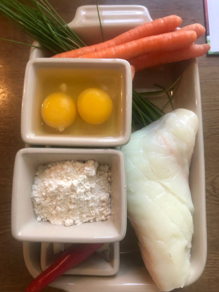 Denne oppskrift har jeg alltid brukt, justert den litt med å tilsette ingefær og chili.. valg av fisk er etter smak, torsk, hyse, kolje eller sei fungerer bra, her er det brukt kveite, noe som smakte godt sammen med sandefjordsmør, smågulrøtter og lettvinte poteter, ( oppskrift på disse finnes på lammecarre)