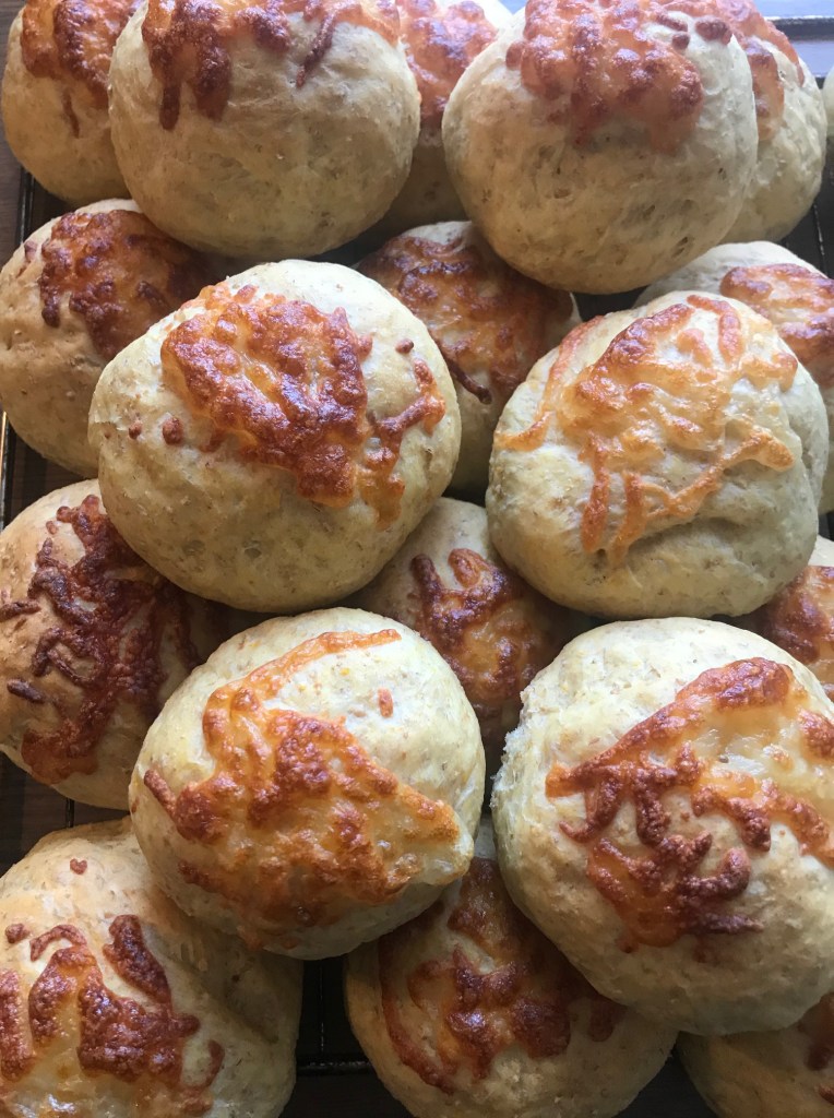 Ha alle ingredienser i en bolle, untatt smør, elt dette i 10 minutt på middels hastighet, tilsett temperert smør, elt i 4 minutt til.. dekk til bollen og sett til heving i ca 40 minutt.. ( eller dobbel størrelse) Deigen er veldig lett å jobbe med,ikke klissete, behøver nesten ikke mel på benken. Del opp i ca 20 deigemner, ha på brett, etterhev til dobbel størrelse.. pensle med vann, dryss gjerne litt revet ost på toppen, stekes på 225 grader i 12 minutt.. ( jeg brukte mozzarella ost)
