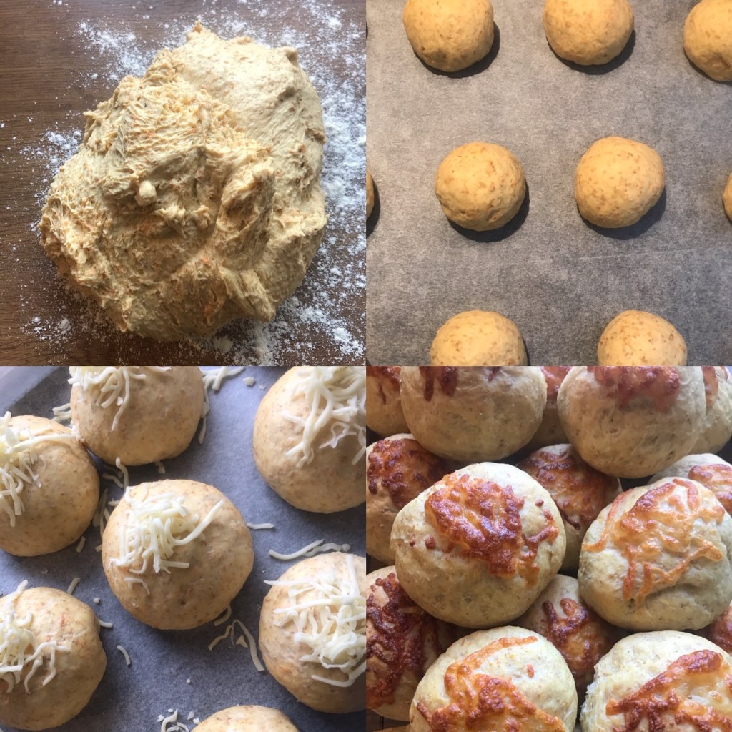 Inspirert av Wenches kjøkken på God morgen Norge, ble denne oppskrift til, revet gulrot forbindes for det meste med gulrot/krydderkake, ikke i gjærdeig som her.. Jeg brukte samme mel mengde, men justerte oppskriften en del, med et godt resultat, rundtykkene ble både luftig og smakfulle.. Disse har 2 hevinger.
