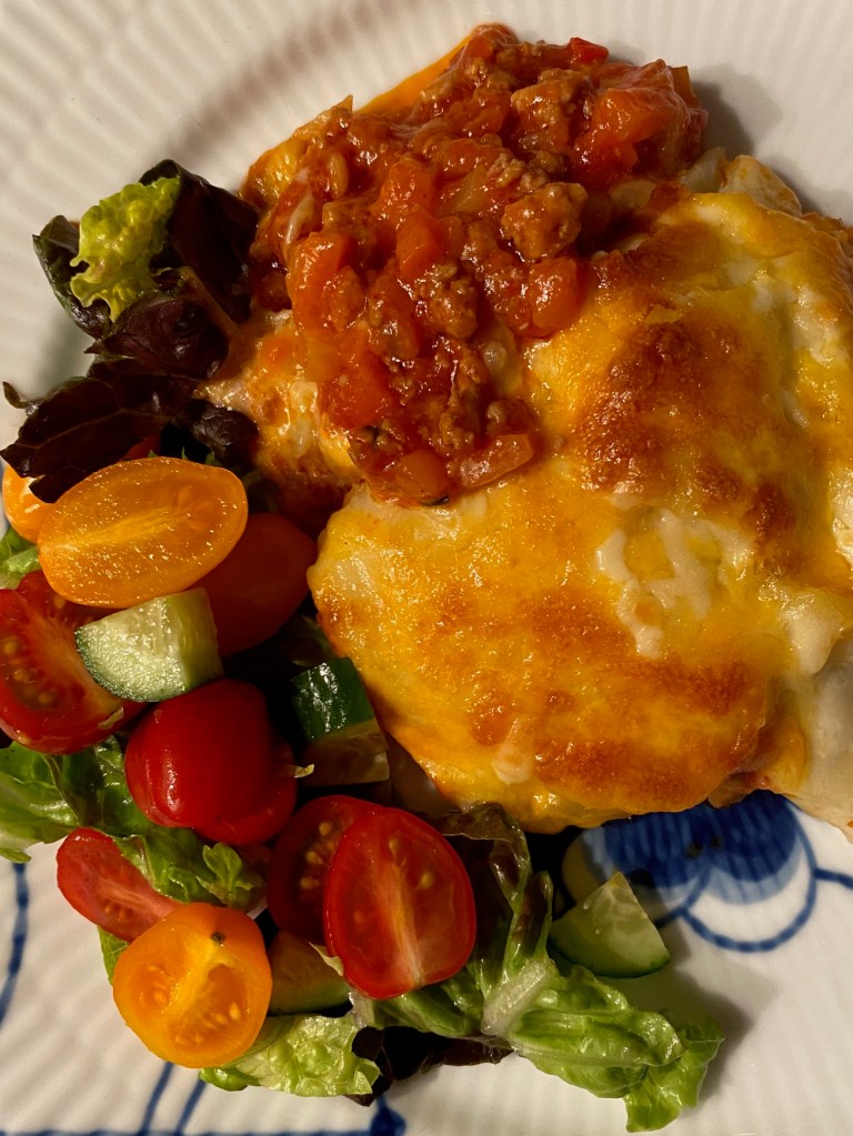 Når du får gjester på kort varsel, ta en titt i kjøleskapet og se hva du har.. i dette tilfellet ble det kjøttsaus som i Shepherds Pie, med en ny vri.. helt enig med de som sier, at en aldri bør endre på en gammel god klassiker, men her valgte jeg å gjøre et lite unntak, og det ble såpass velsmakende, at jeg velger å dele tipset med andre.
