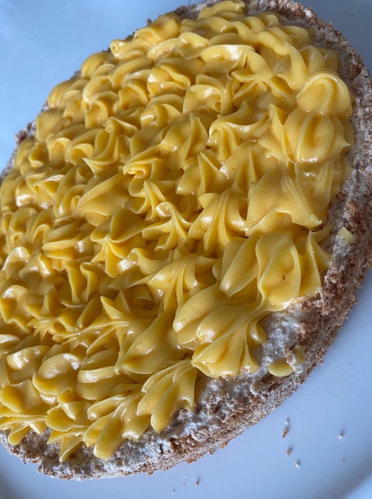 Denne kaken finnes det mange oppskrifter på, både på bunn og krem. Alle har vi vår familiefavoritt. Noen bruker hele egg, andre bare eggehviter. Min oppskrift er enkel, men jeg foretrekker å male mandlene for hånd, det gir best resultat.