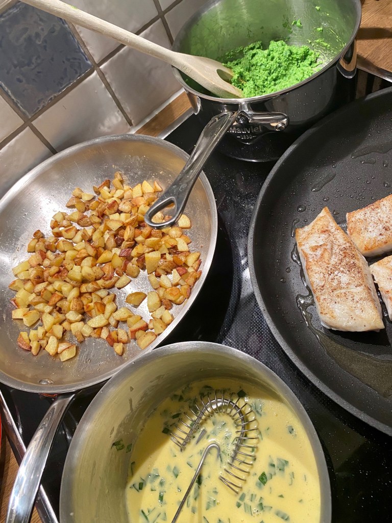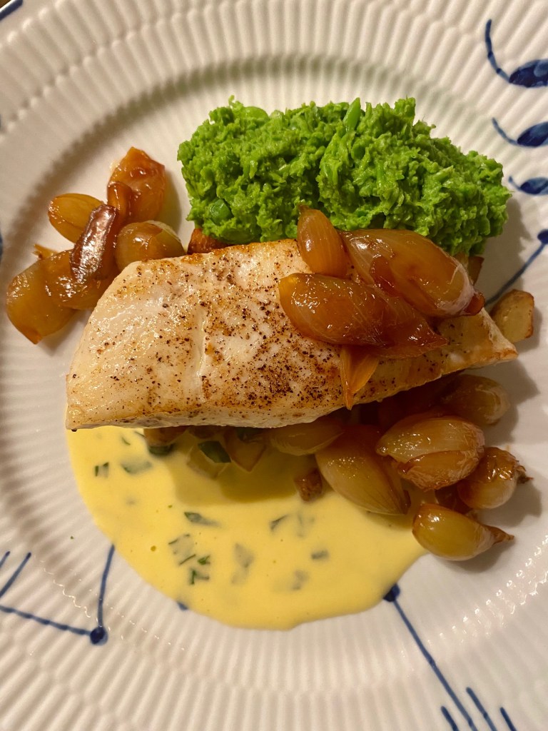 Denne oppskriften fant jeg i VG Helg, der flere kjente kokker legger inn sine oppskrifter, denne er fra Lise Finckenhagen, hun anbefalte den til stekt skrei, sammen med estragonsmør.. jeg brukte løk og saus til stekt kveite, sammen med erterpure pluss råstekte poteter ble en suksess. Kan brukes til alle typer hvit fisk.