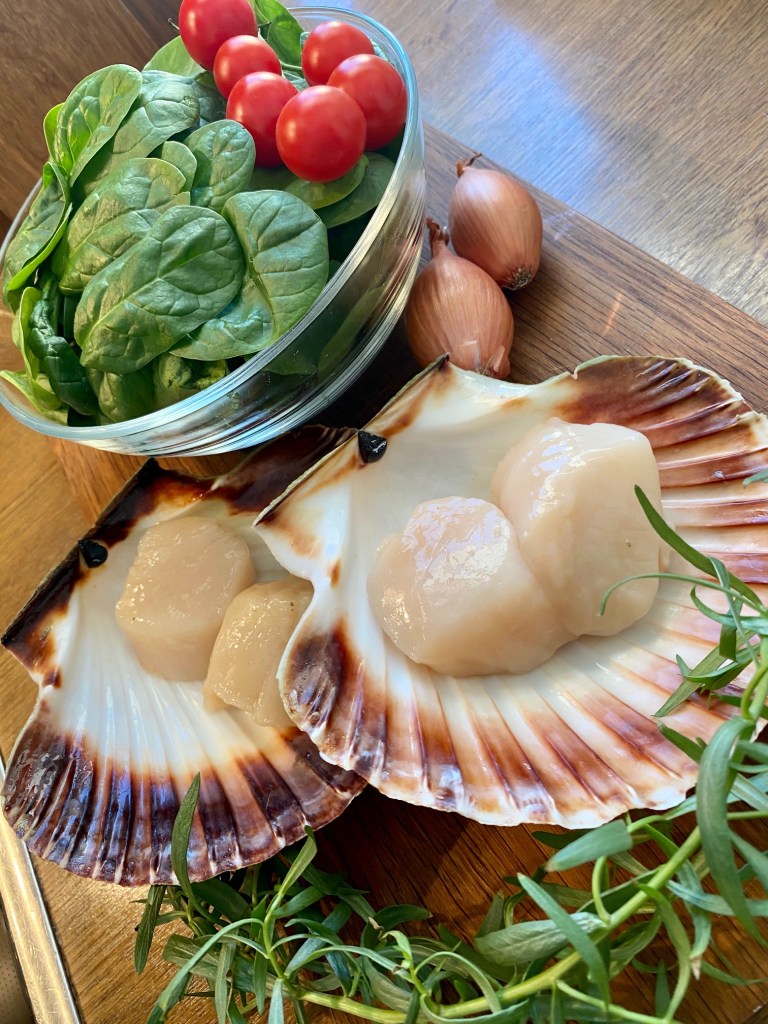 Ferske kamskjell er en favoritt forrett, denne retten minner meg om 80 tallet, da Gourmet restauranten Jans Mat & Vinhus lot oss oppdage mange gode måter å tilberede denne råvare på… Her er en av oppskriftene som kjøkkensjef Harald Osa serverte sine gjester.. Ikke alltid lett å få tak i, men Fisketorget i Stavanger kan ofte tilby sine kunder denne delikatessen 1 gang i uken.. Denne forretten kan forberedes i god tid helt frem til stekeovnsdøren.