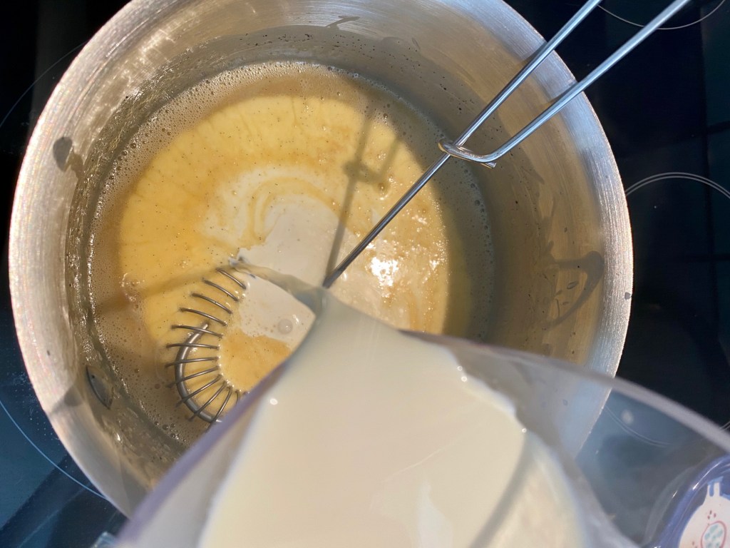 2,5 dl kald fløte , som tilsettes til slutt