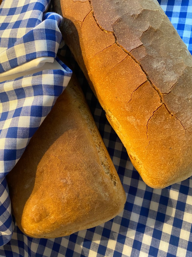 Brødet har 2 hevinger, kan settes om kvelden, da med kaldt vann og kun 10 gram gjær. Stekes på 210 grader i ca 40 minutt.