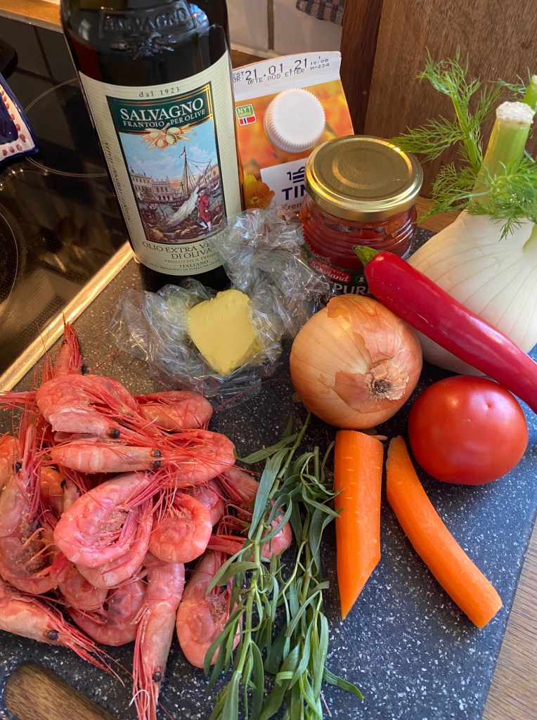 Har du en pose med ferske reker eller noen sjøkreps, utnytt skallet, kok en god kraft, den gir en fantastisk suppe.. Denne retten kan forberedes i god tid, server den som forrett eller hovedrett sammen med en god bagutte og aioli.. Uansett, hvis rekene skal benyttes til noe annet, pytt skallet i frysen.. ta det frem når det passer, lag en god fiskesuppe..