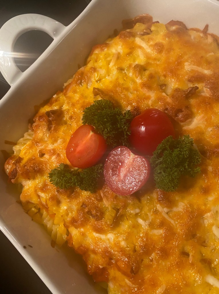 - Topp det hele med revet ost og putt inn i forvarmet ovn på 220 grader i 10-12min.
