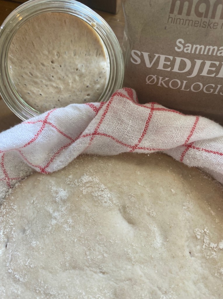 - Brett håndkle over, legg i hevekurv/bolle, etterhev på kjøkkenbenken i 2 timer.