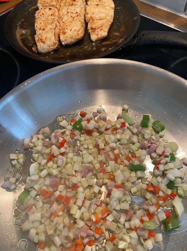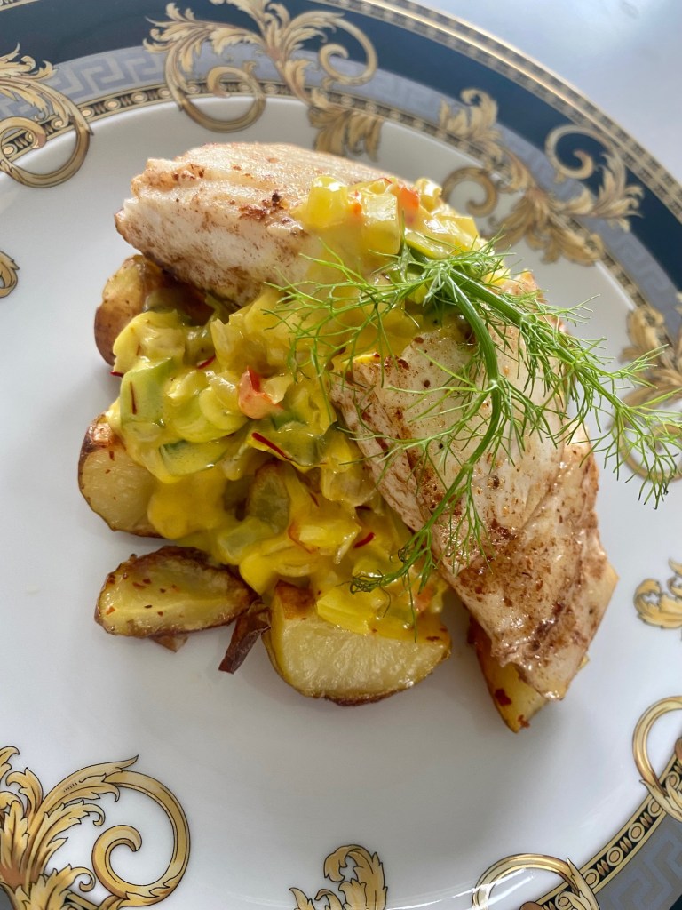 Det finnes mange typer tilbehør til fisk, her et garnityr som er utmerket til kveite, torsk eller piggvar…dampet fisk eller stekt, her vises stekt villkveite som er en av mine favoritter.. sammen med nypoteter ble dette en utmerket rett.. her er oppskrift.