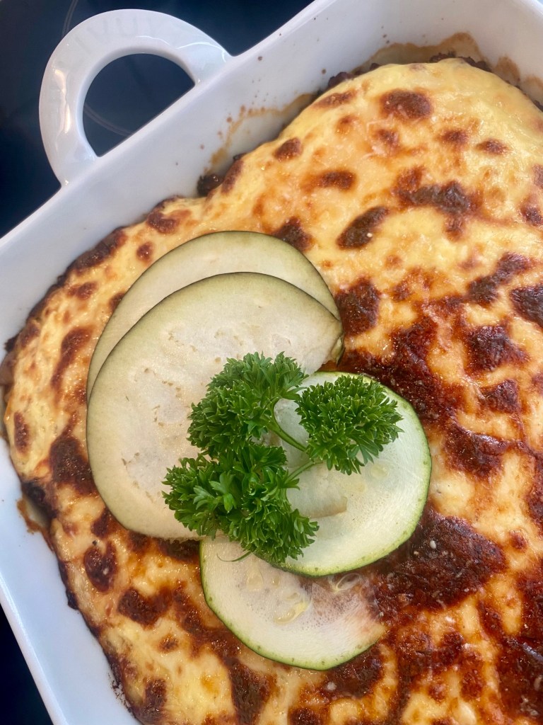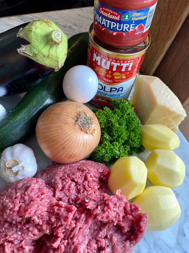 Moussaka er vel en av de mest kjente Greske oppskrifter, den inneholder kjøttsaus, grønnsaker og god ostesaus på toppen.. jeg velger å steke poteter og grønnsaker på forhånd, synes resultatet blir bedre. Enkelte synes dette tar litt tid, men kjøttsausen kan lages dagen før servering, oppbevares i kjøleskap, egner seg godt til frysing.
