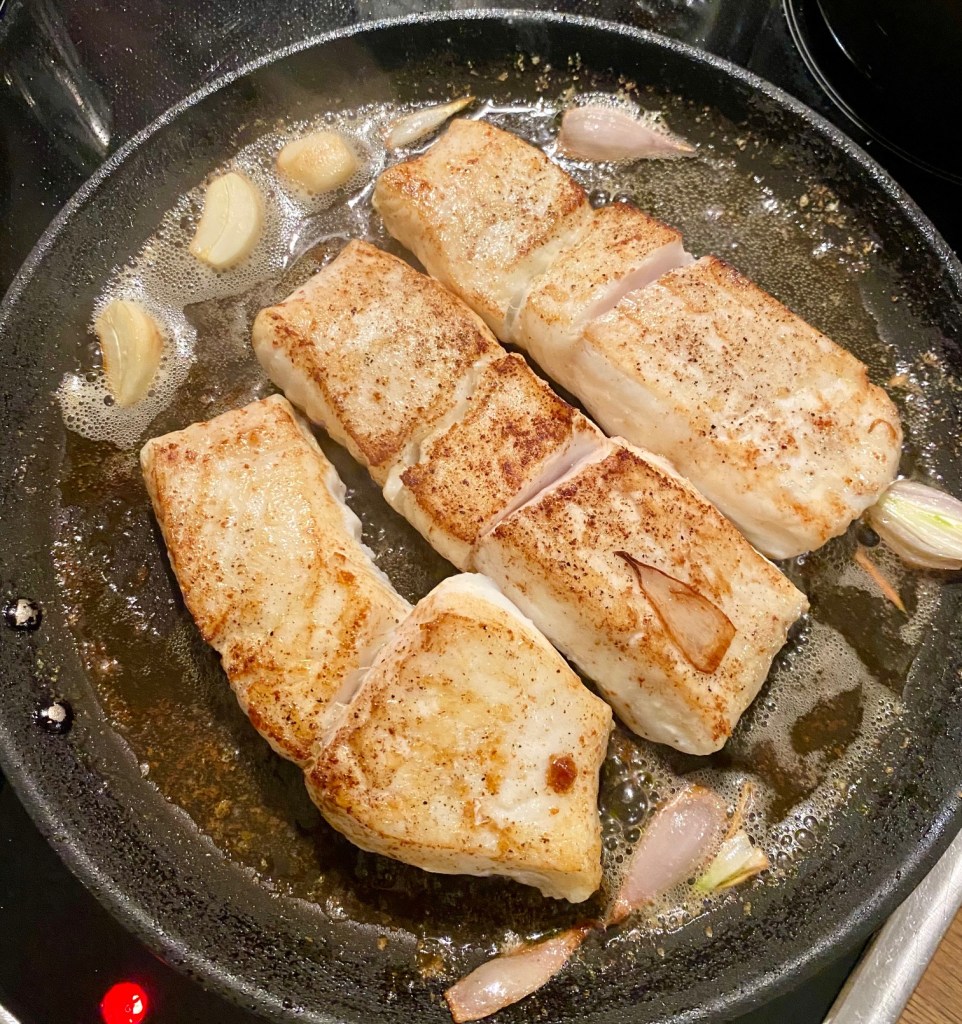 Dette er en oppskrift der sausen høyner retten…Den kan brukes til flere typer fisk og skalldyr. Denne gang hadde Fisketorget i Stavanger Villkveite og Nykokt sjøkreps i fiskedisken, men bruk gjerne torsk, laks eller ørret.. du kan velge å sløyfe skalldyr. Sausen kan forberedes i god tid på forhånd, bare gis et oppkok før servering. Tilbehør etter egen smak, jeg valgte råstekte potetbåter pluss smørdampet gourmet gulrøtter.