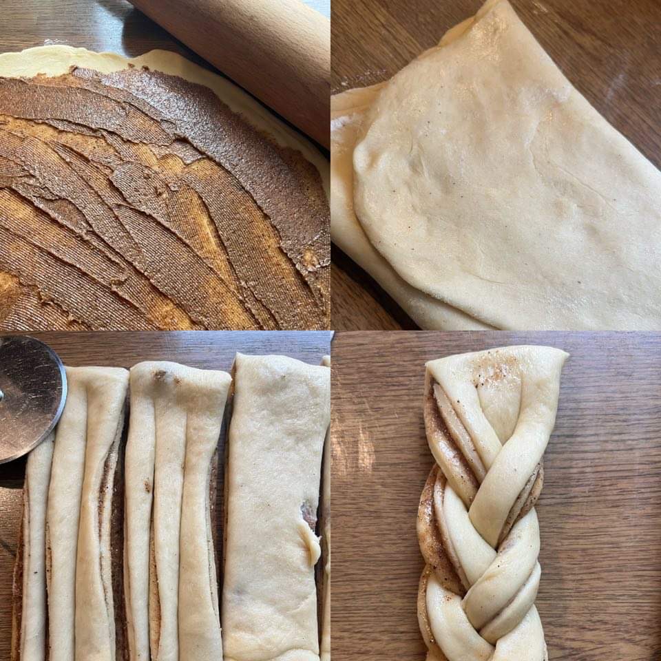 Fremgangsmåte: Ha alt det tørre i kjøkkenmaskinen, smuldre gjær, tilsett melk og egg og elte på middels hastighet i 10 minutt, tilsett romtemperert smør litt om gangen, og elt i ca 5 minutt til.. sett til heving i ca 1 time.