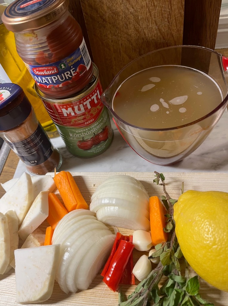 Dette er tomarsuppe laget fra bunnen, etter inspirasjon fra GMN der Christer Rødseth stod for for denne oppskrift. Jeg har justert den litt, bruk det du har av grønnsaker, den hadde mye smak, og var utrolig enkel og rask å lage.